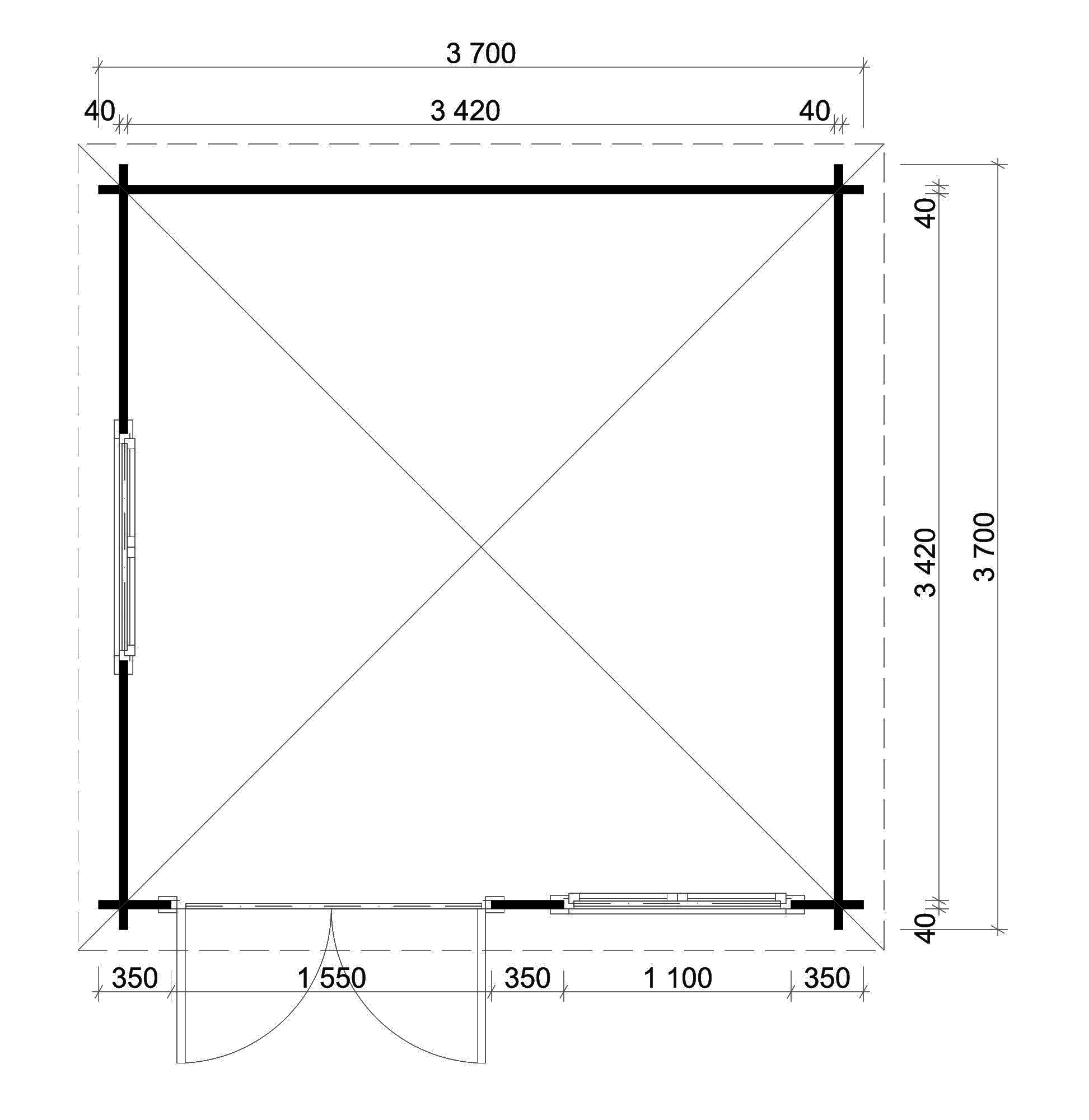 - Внешние размеры: 370 x 370 см