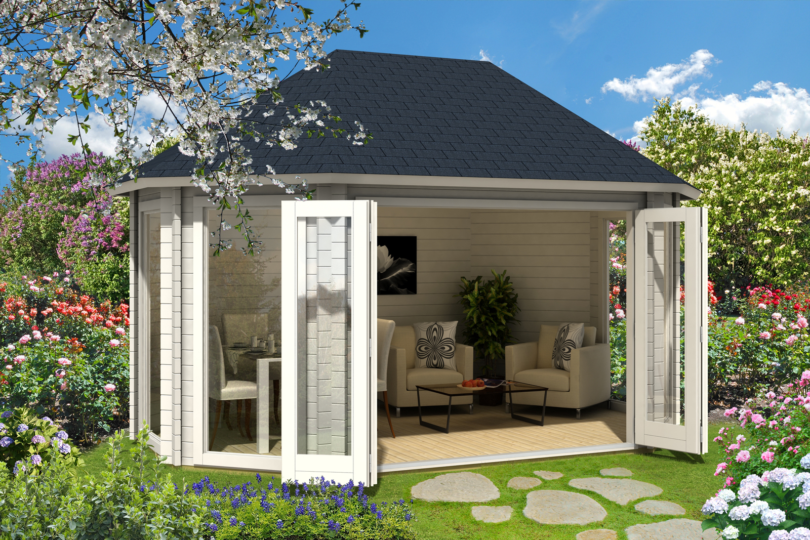 - 1 большая 4-кратная складная дверь: приблизительно 247 x 190 см