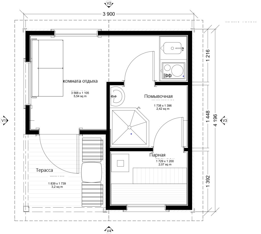 Терраса: 3,2 м2.