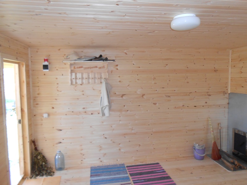 - Двери:Входная, внутренние − сосновые, в парной – осиновая.