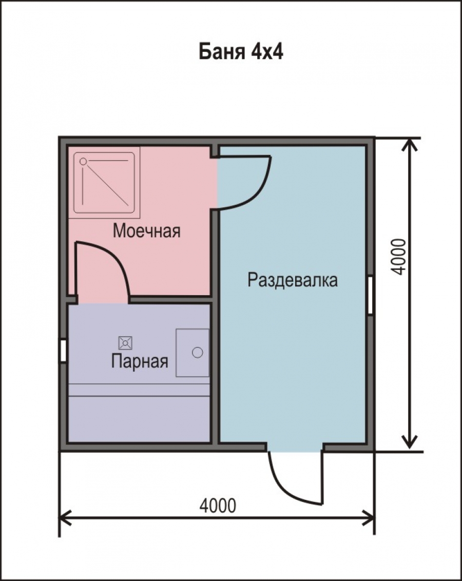 Модульная мобильная каркасная баня под ключ 4х4 м состоит из двух половинок (4х2м), которые устанавливаются на фундаментную обвязку из бруса 150х100 мм и образуют полноценную баню с комнатой отдыха, парилкой и мойкой. Контур утепления составляет 100 мм (пол, стены, потолок) за счет чего модульная баня прогревается быстро и равномерно. Отделка парилки бани внутри выполнена липы. Фольгированная пароизоляция под липой защищает утеплитель и отражает ИК-излучение, что способствует оптимальному нагреву парной и создает комфортную атмосферу. Контур бани утеплен негорючим утеплителем KNAUF. Ветрозащитная мембрана снаружи предохраняет утеплитель от попадания влаги с улицы, он остается сухим и выполняет свою основную функцию – сохраняет тепло. Снаружи стены мобильной каркасной бани покрыты имитацией бруса. Кровля двускатная, покрыта андулин либо битумная черепица