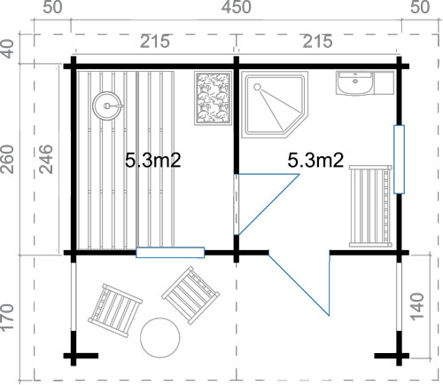 Поставляется в готовом виде состоит из двух элементов бани и террасы , можно приобрести как конструктор для самостоятельной сборки.