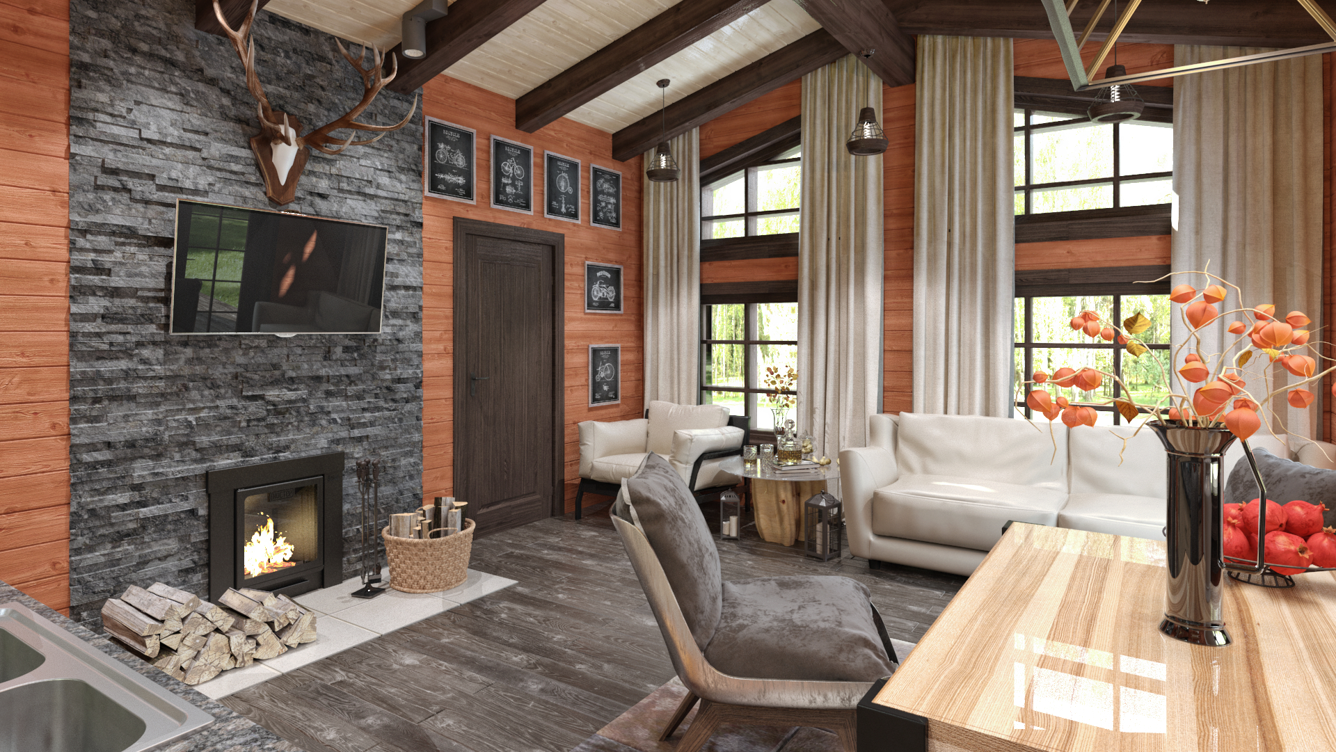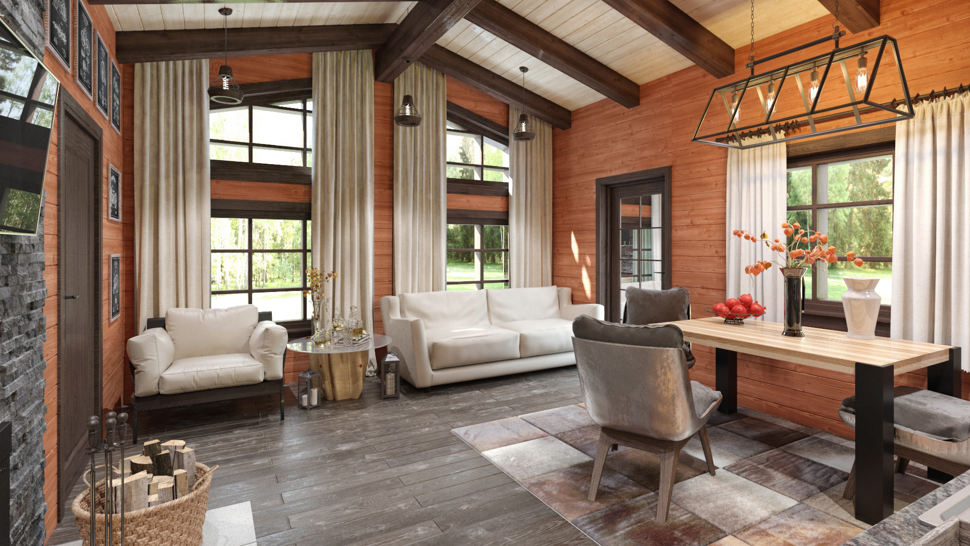 Особенности: Красивая архитектура, современные планировочные решения - панорамное остекление, второй свет, большая кухня-гостиная, топка - камин, возможна установка парной в разных режимах (финская, русская, хамам), веранда - беседка с грилем и выходом из гостиной, санузел, печи , разные варианты отделки парилки и печей.