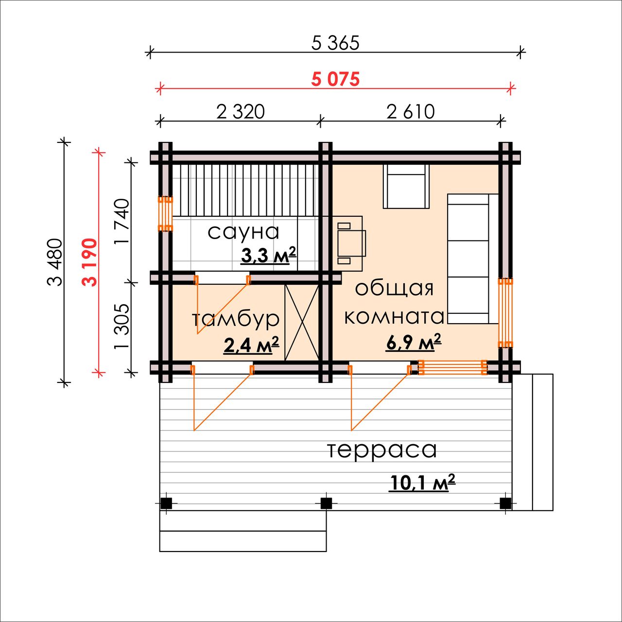 - стены-100 мм (2х50)