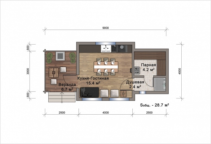 Площадь: 28,7 м2