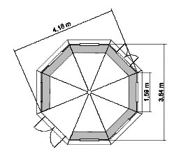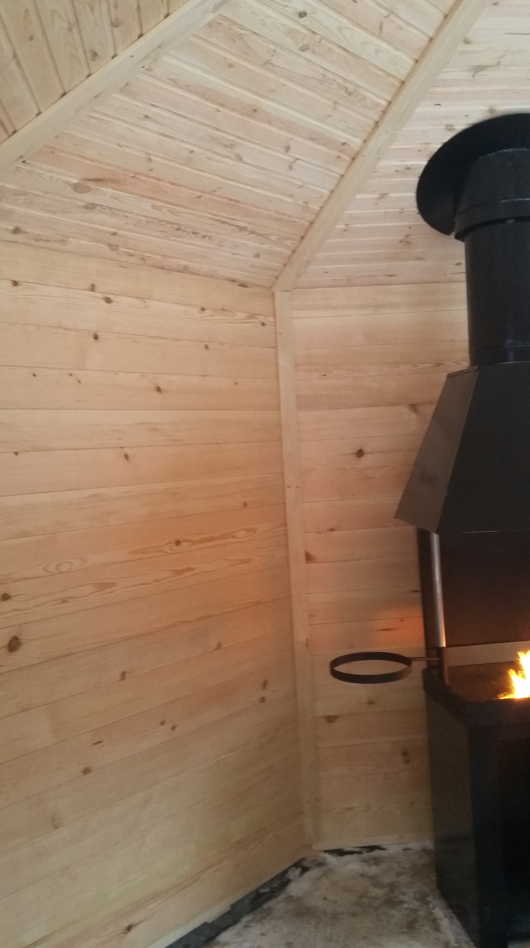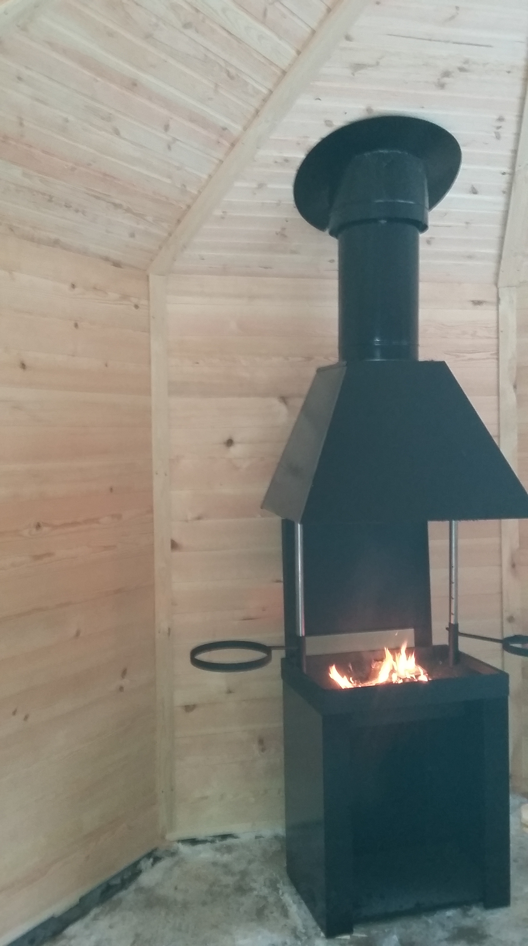 В комплекте: комплекс барбекю с регулируемой Дыма вытяжка, столы для Барбекю, по периметру скамейки, четыре окна изолированное остекление, два из них открываются, клей деревянная дверь с цилиндрическим замком и деревянной ручкой, полы кровля