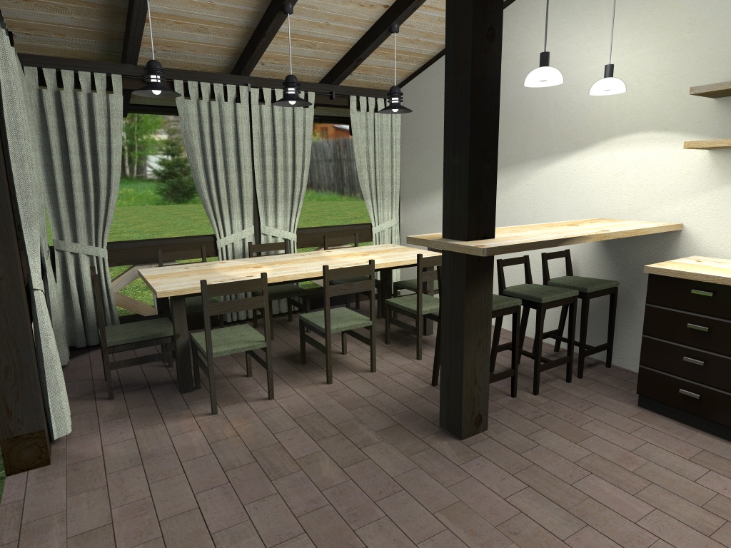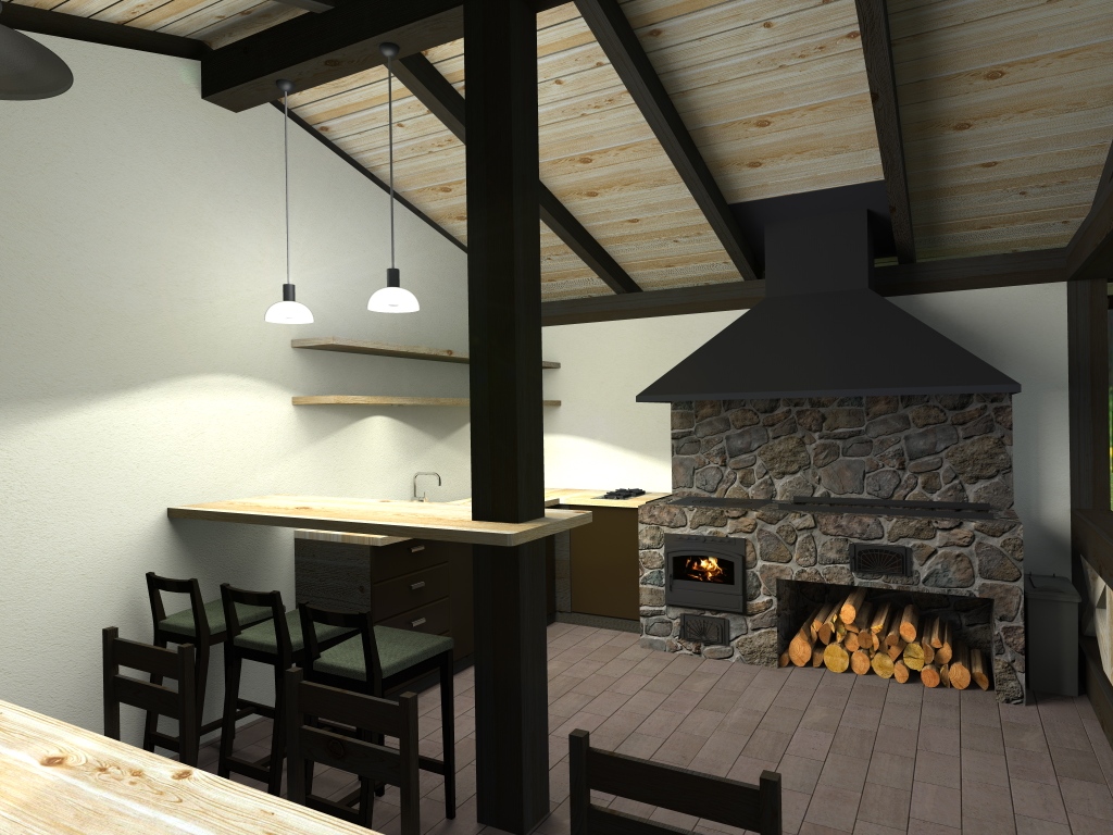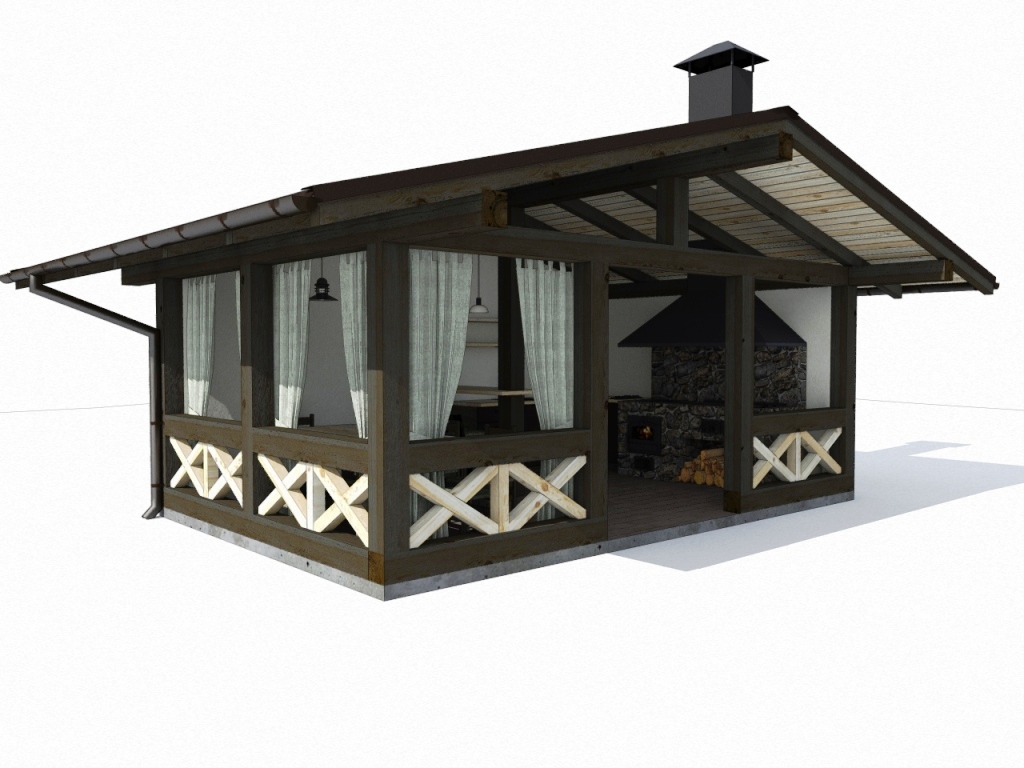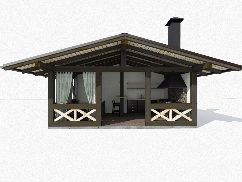 Красивый проект компактной беседки 6 х 4 с барбекю и летней кухонной зоной.