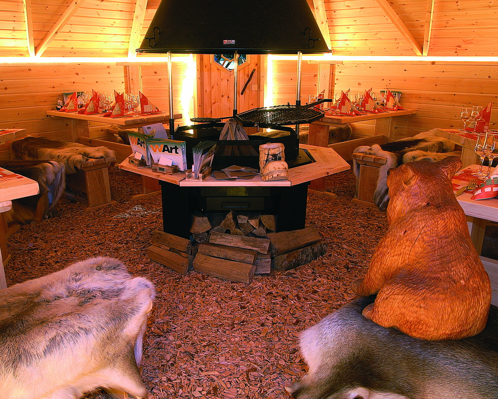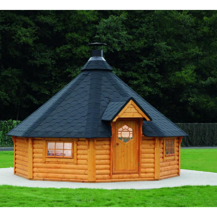 В комплекте: комплекс барбекю с регулируемой Дыма вытяжка, столы для Барбекю, по периметру скамейки, четыре окна изолированное остекление, два из них для Открытия, клей деревянная дверь с цилиндрическим замком и деревянной ручкой, полы решетки и готовая кровля