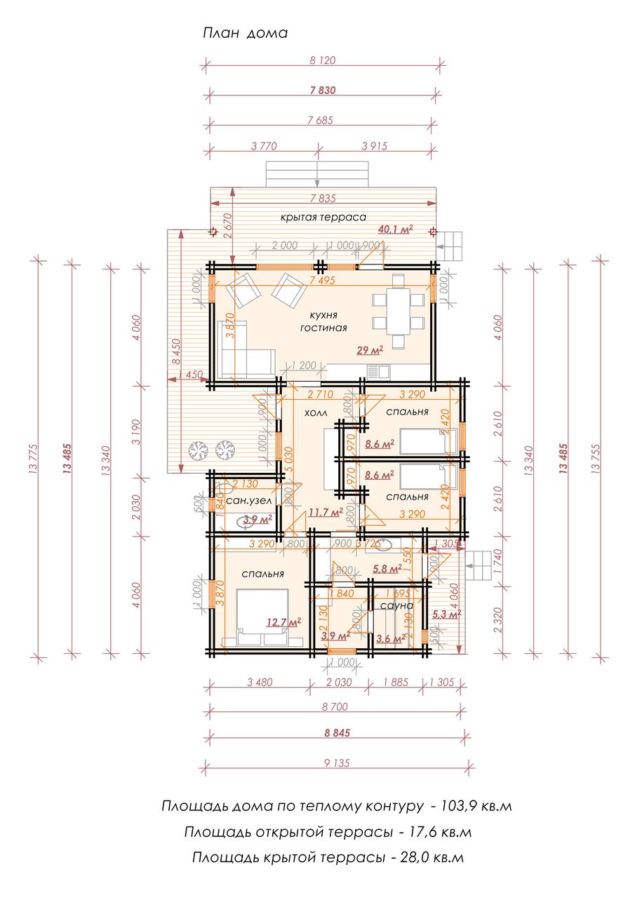 (в домокомплект входят стены (без утеплителя), запиленные по проекту)