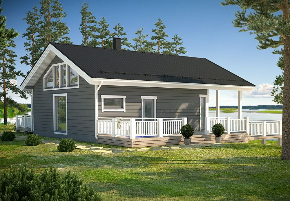 В базовую комплектацию входит: свайно-винтовой фундамент, домокомплект зимнего дома с толщиной стены 190 мм, утепленный пол, утепленная крыша, окна (двойной стеклопакет), деревянные межкомнатные двери, входная металлическая дверь, покрытие крыши кровельным материалом (металлочерепица), монтаж дома.
