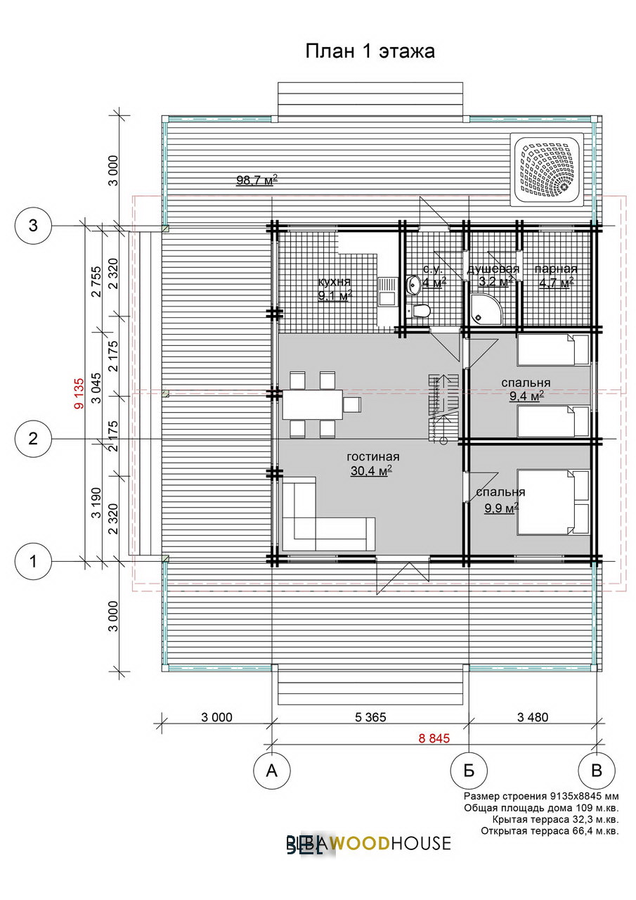 (в домокомплект входят стены (без утеплителя), запиленные по проекту)