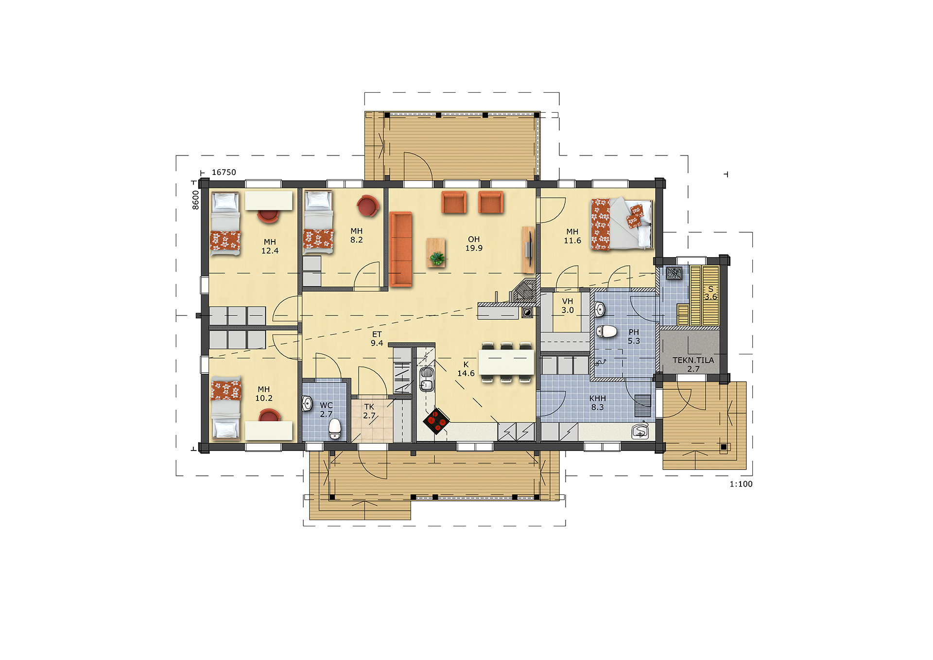 Количество комнат: 4,+ сауна, техническое помещение.