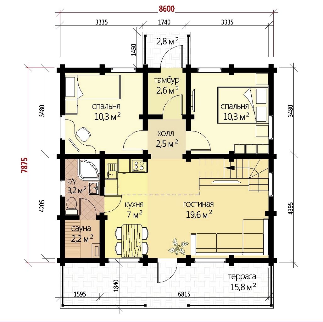(в домокомплект входят стены (без утеплителя), запиленные по проекту)
