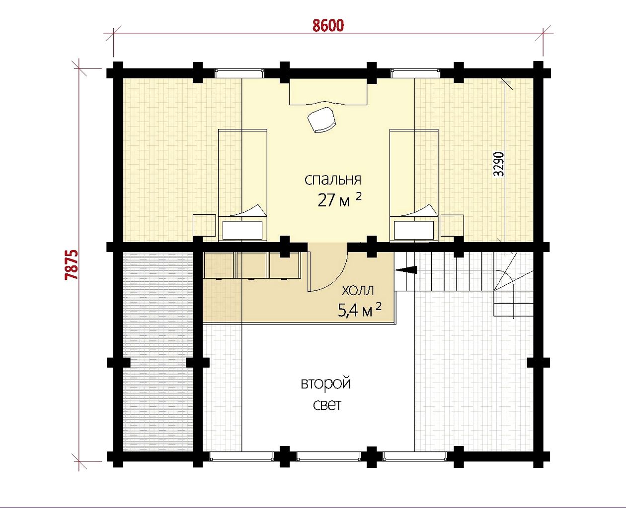 Площадь второго этажа - 37,3 м2 (второй свет - 24 м2)