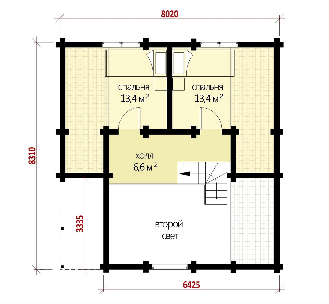 Площадь второго этажа - 40 м2 (второй свет - 21,5 м2, терраса 20 м2)
