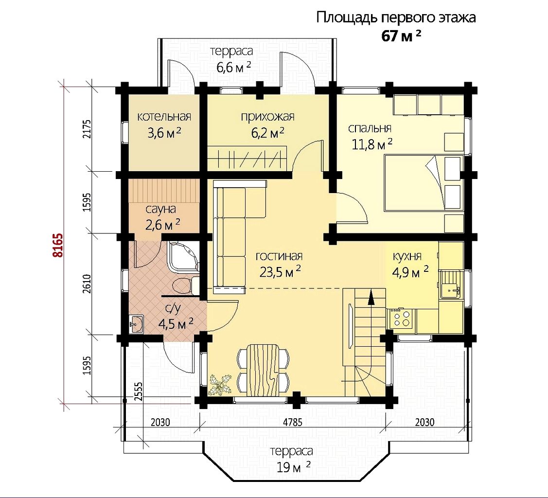 (в домокомплект входят стены (без утеплителя), запиленные по проекту)
