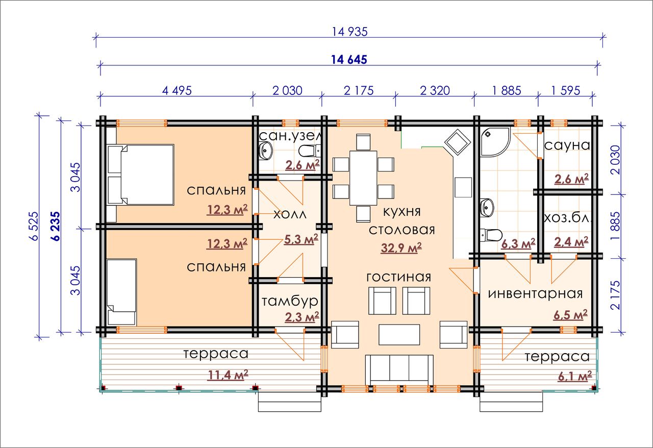 (в домокомплект входят стены (без утеплителя), запиленные по проекту)