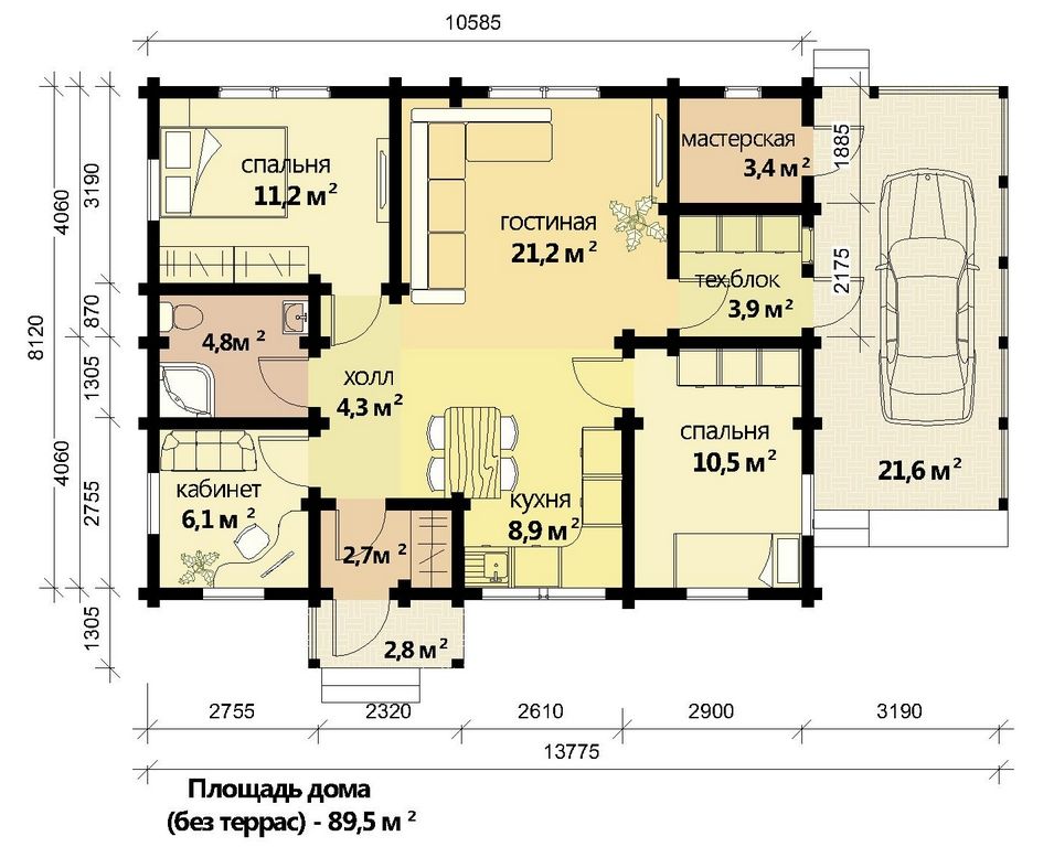 Площадь навеса под гараж (без устройсва пола) - 21,6 м2