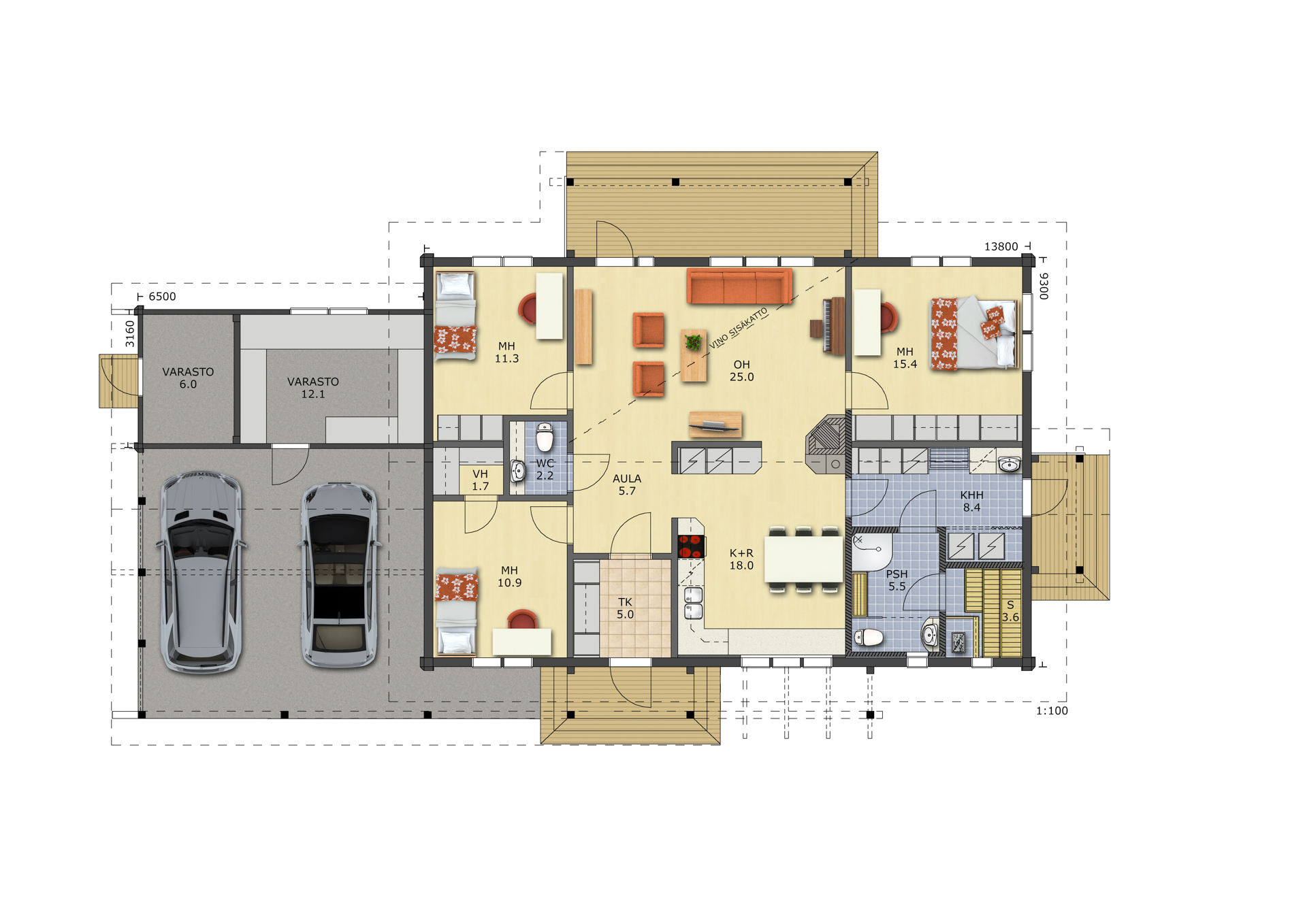 Количество комнат: 3,+ сауна, технические помещения.