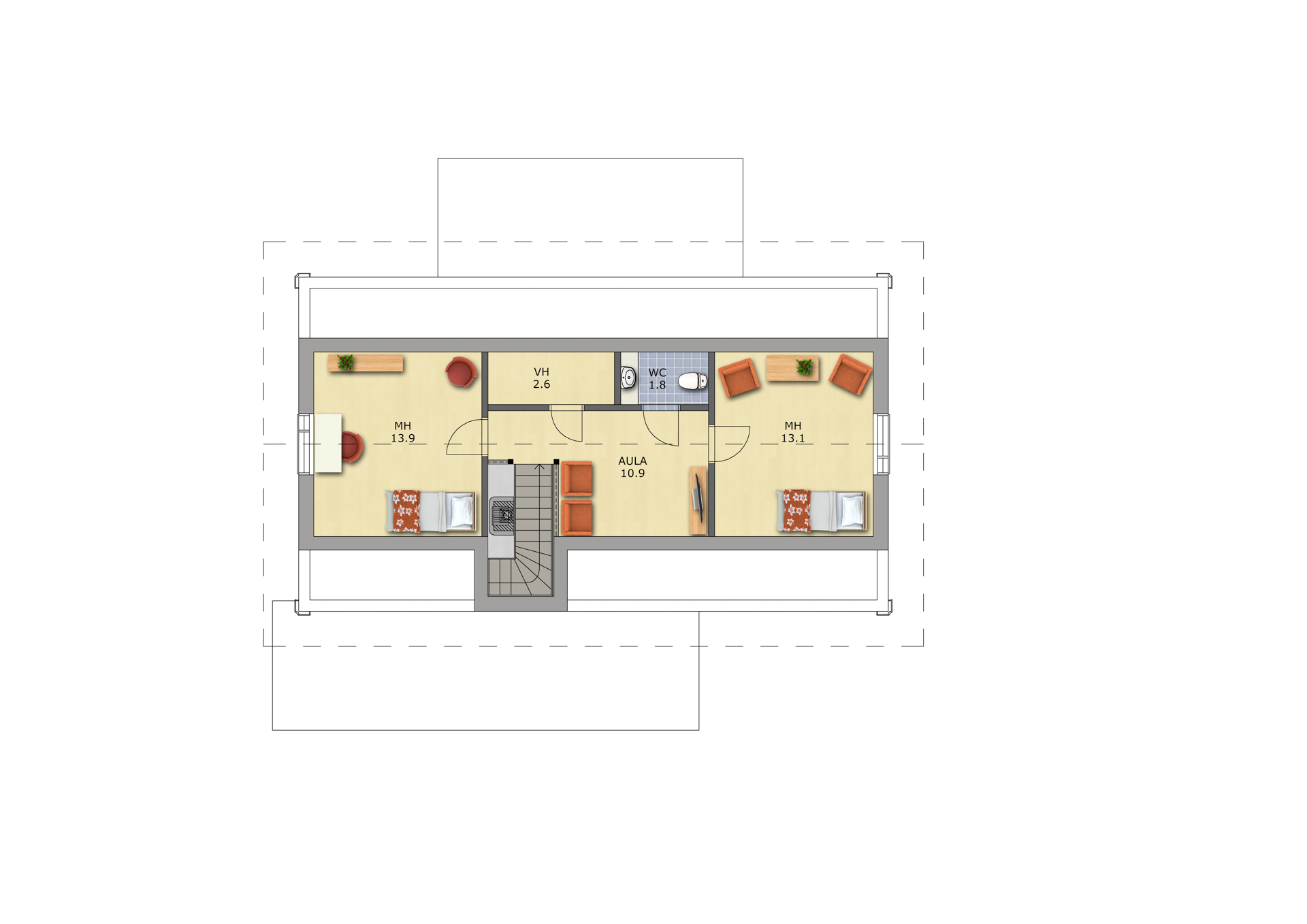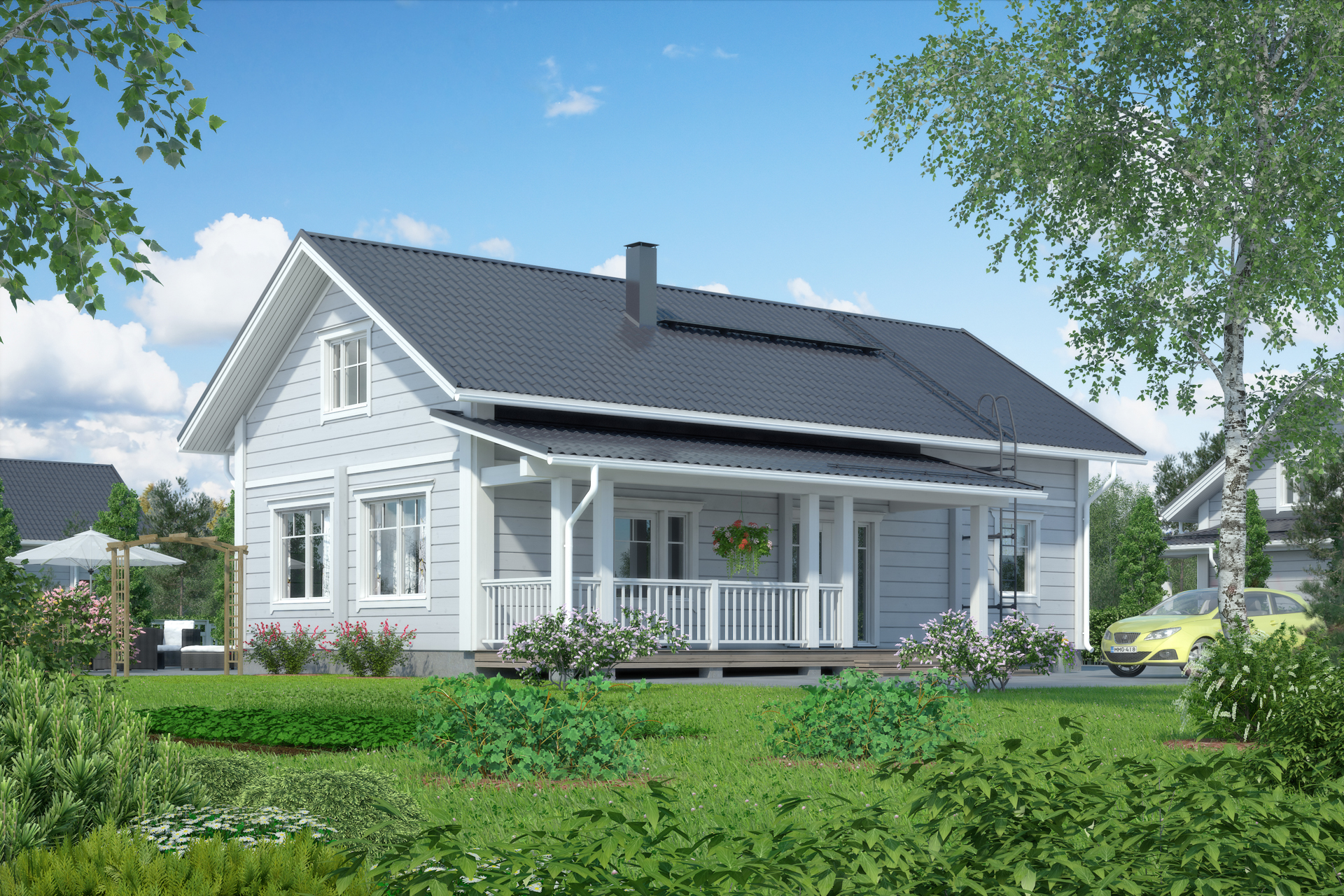 дом на два этажа. Просторная кухня-гостиная и на втором этаже, уютный холл с двумя спальнями.