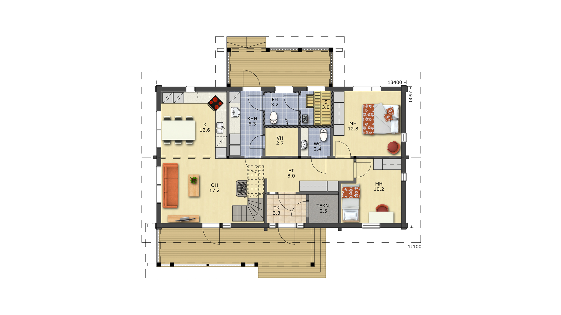 Количество комнат: 4, +сауна, технические помещения.