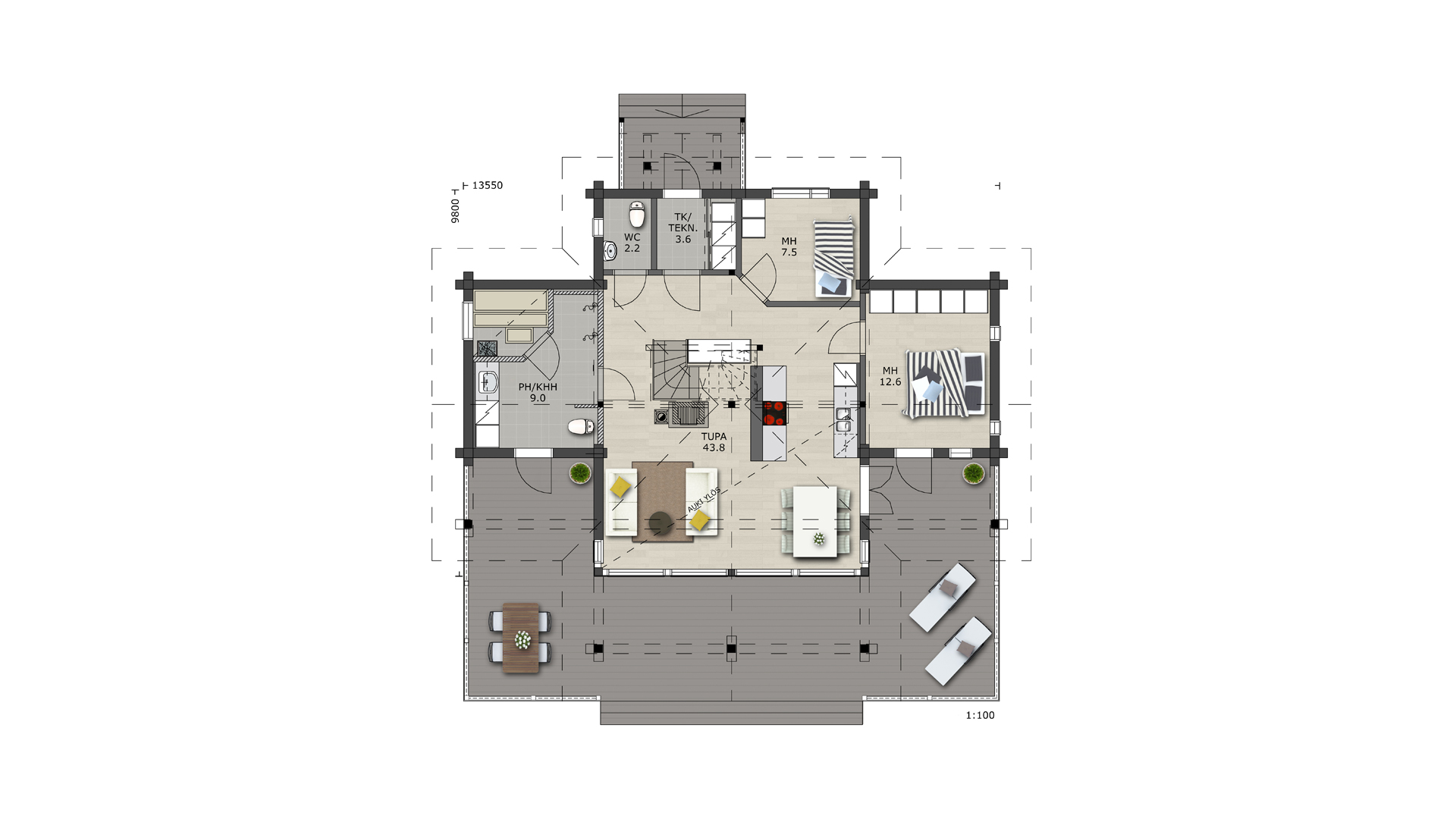 Количество комнат:2 , + сауна, техническое помещение.