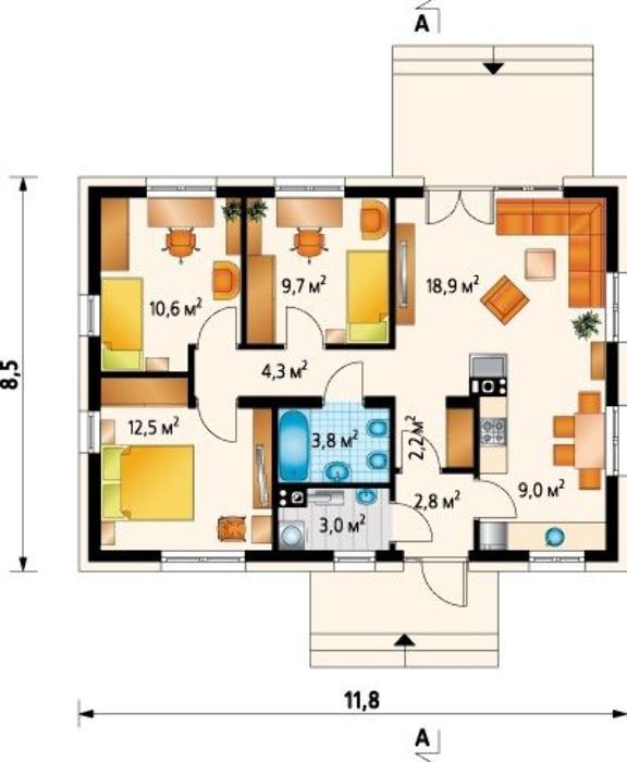 Размер дома 8500х11800 мм + терраса 10 кв.м