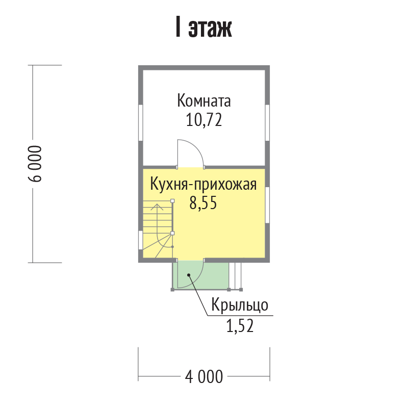 Размер дома 6000х4000 мм + терраса 8 кв.м