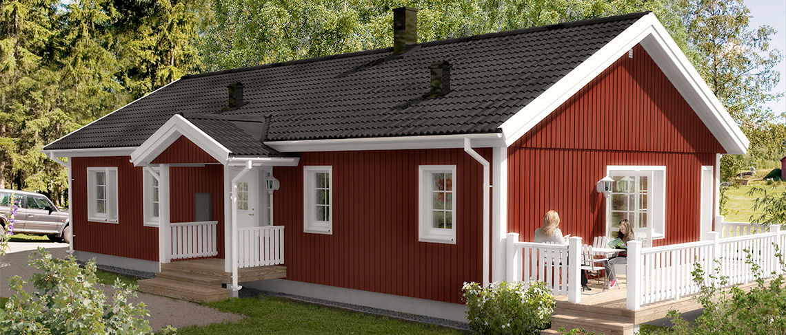 В базовую комплектацию входит: свайно-винтовой фундамент, домокомплект зимнего дома с толщиной стены 182 мм (имитация бруса 20 мм + минеральная вата 150 мм + вагонка 12 мм), утепленный пол, утепленная крыша, окна (двойной стеклопакет), деревянные межкомнатные двери, входная металлическая дверь, покрытие крыши кровельным материалом (ондулин), монтаж дома.