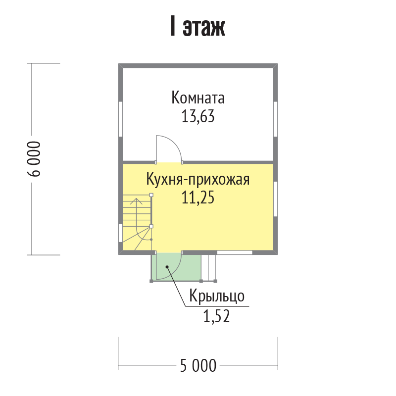 Размер дома 6000х5000 мм + терраса 5 кв.м