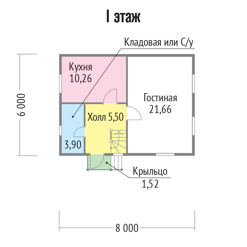Размер дома 6000х8000 мм + терраса 6 кв.м