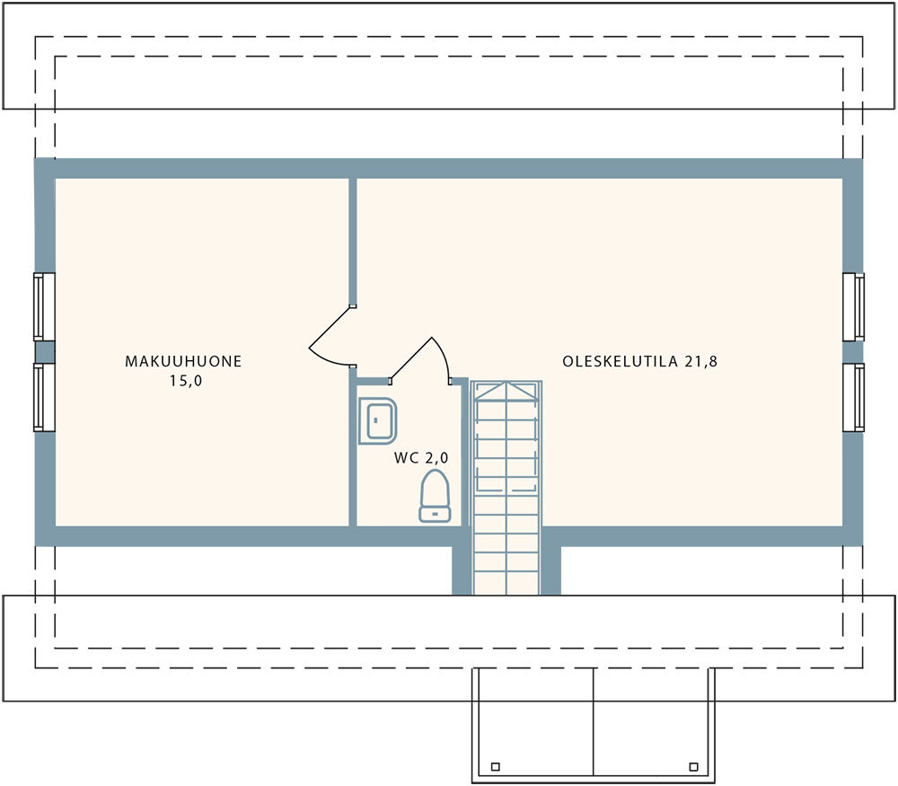 Площадь мансардного этажа по теплому контуру - 38,8 м2
