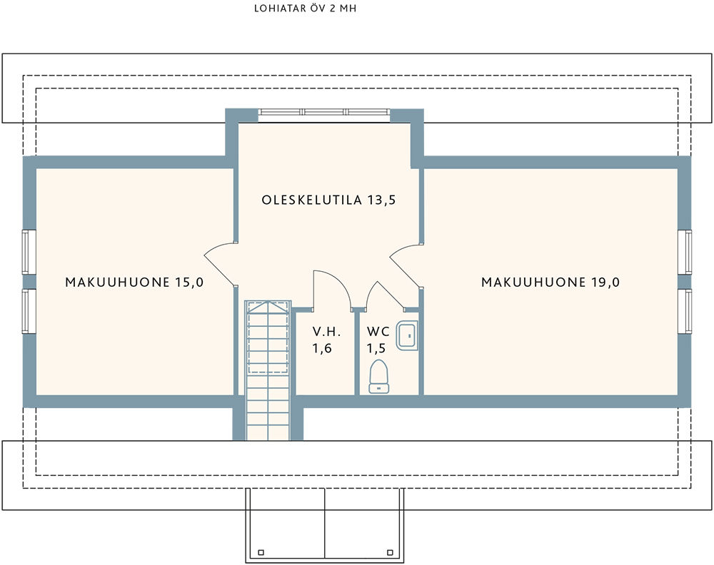 Площадь мансардного этажа по теплому контуру - 50,6 м2