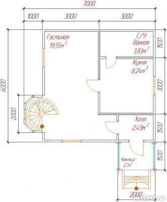 - Размер дома: 6x7 м