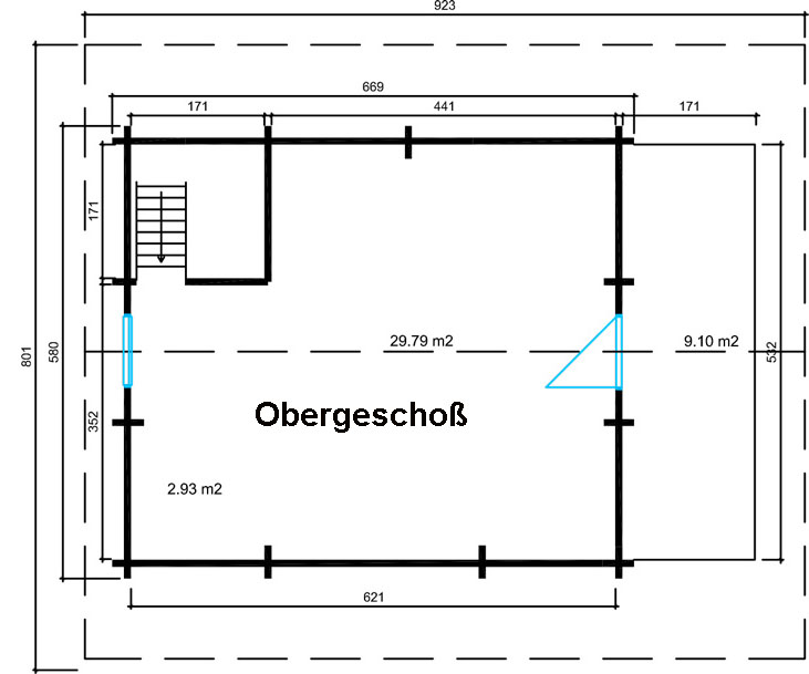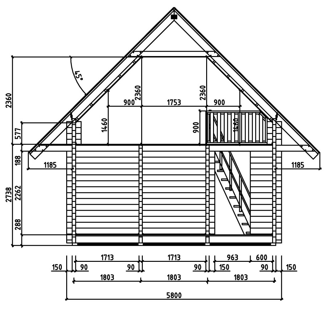 - Blockbohlenaußenmaß дом: 580 х 669 см