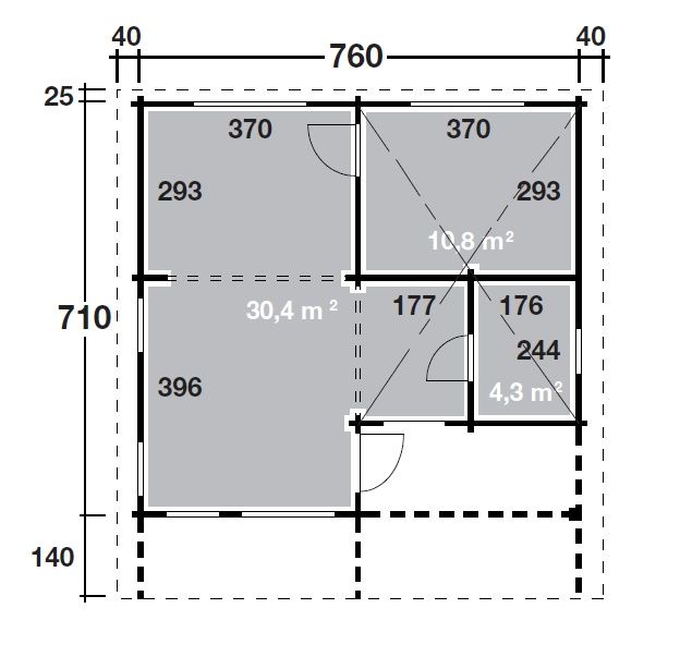 - Sockelmaß: 740 х 710 см