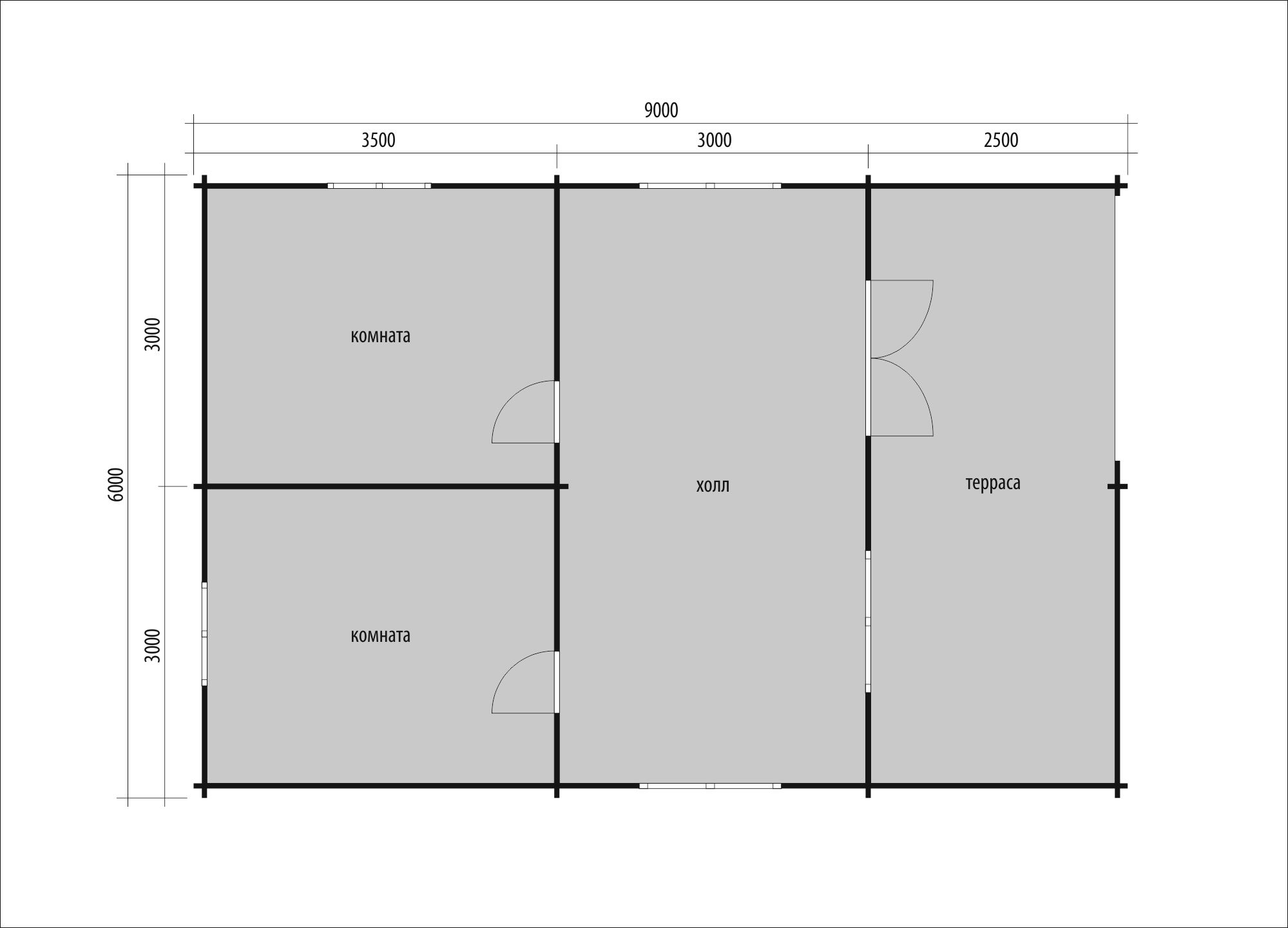 Стены: сухая (8-12%) профилированная доска с зарезанными чашами (по проекту).