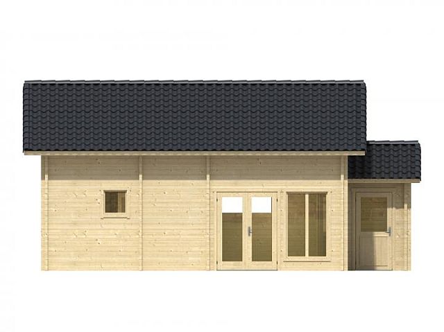 - Двери, со стеклопакетом или цельное дерево (в зависимости от модели), порожек покрыт нержавейкой или алюминием, м, с замком и ручками, вкл. внутренние и внешние наличники.