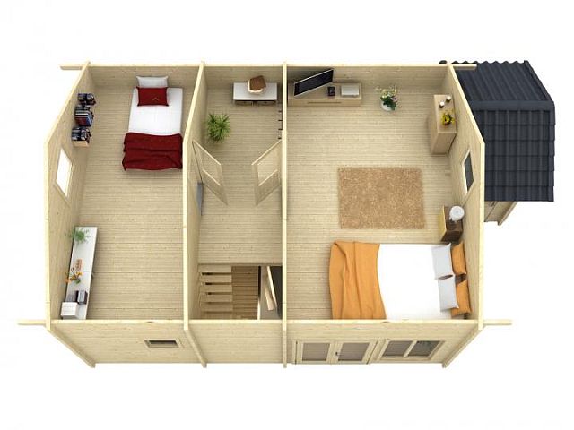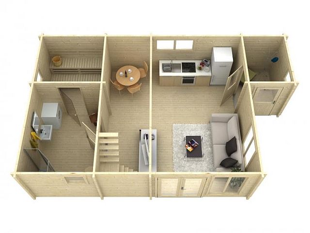 - Пропитанная рама-основание, напольные лаги и настил для террасы (если терраса входит в комплект)