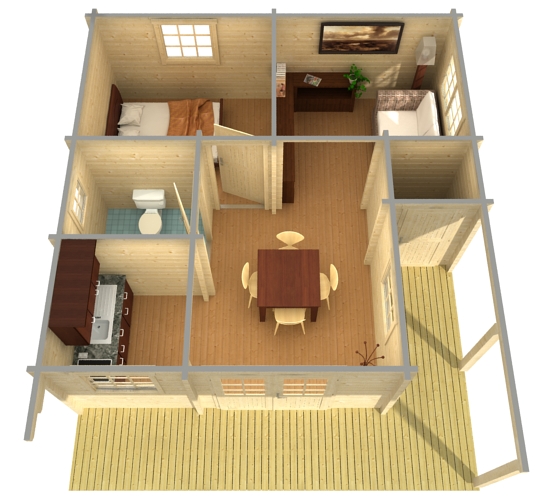 - Пропитанная рама-основание, напольные лаги и настил для террасы (если терраса входит в комплект)