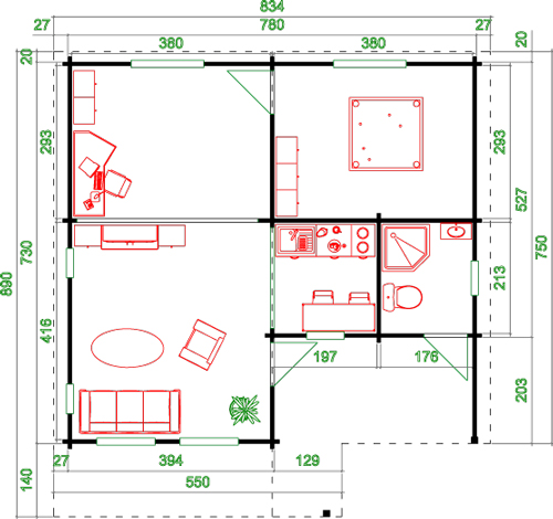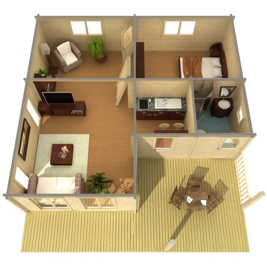 • Пропитанная рама-основание, напольные лаги и настил для террасы (если терраса входит в комплект)