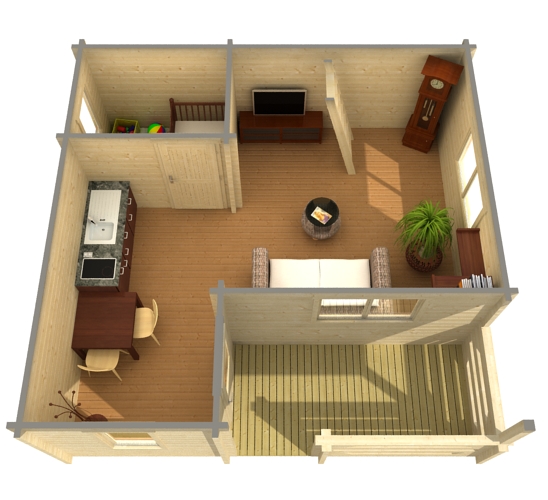 • Пропитанная рама-основание, напольные лаги и настил для террасы (если терраса входит в комплект)