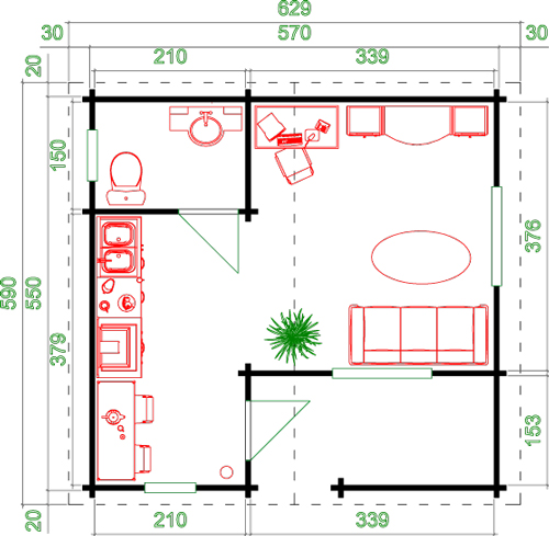 Размеры стен 590*570 cm