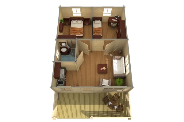 - Пропитанная рама-основание, напольные лаги и настил для террасы (если терраса входит в комплект)