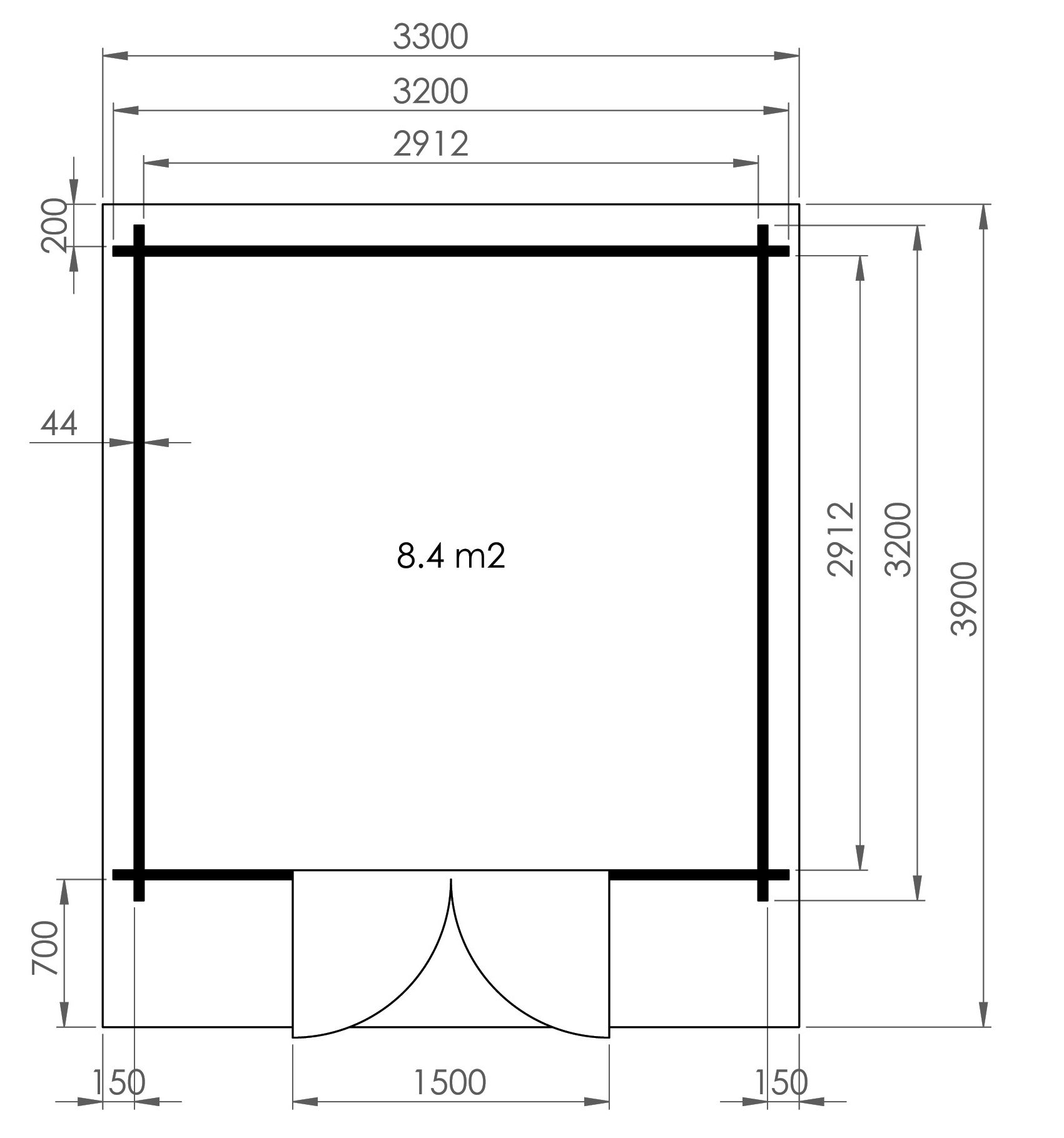 - Sockelmaß: 300 х 300 см