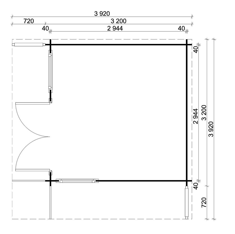 • Внешние размеры с навесом крыши: около 392 x 392 см