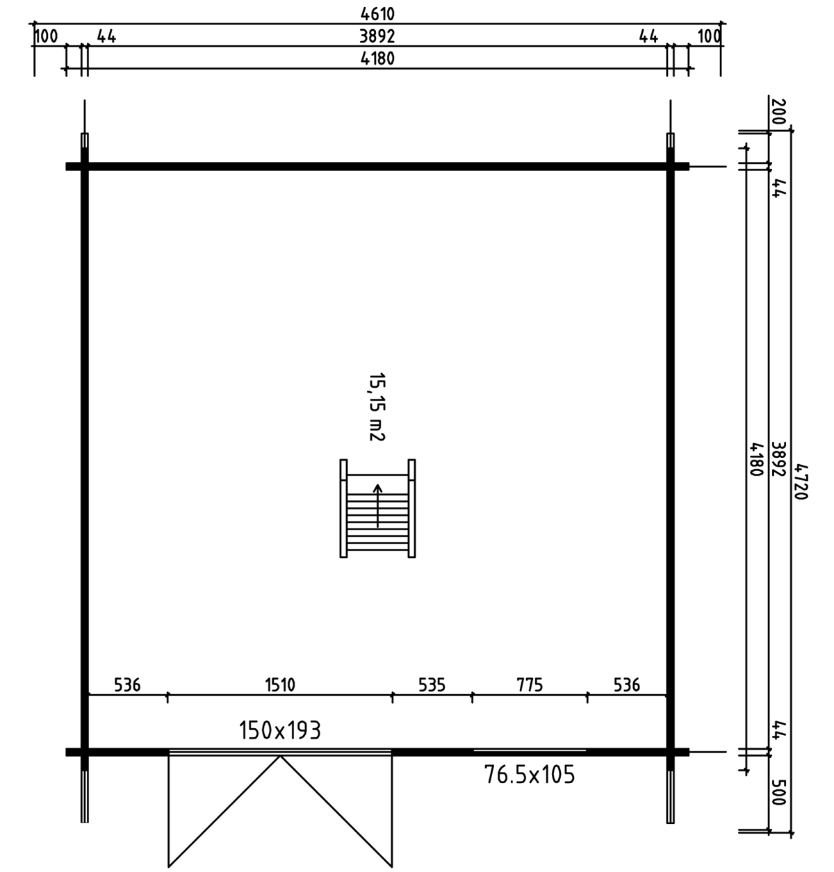 - Внешние размеры: 418 x 418 см