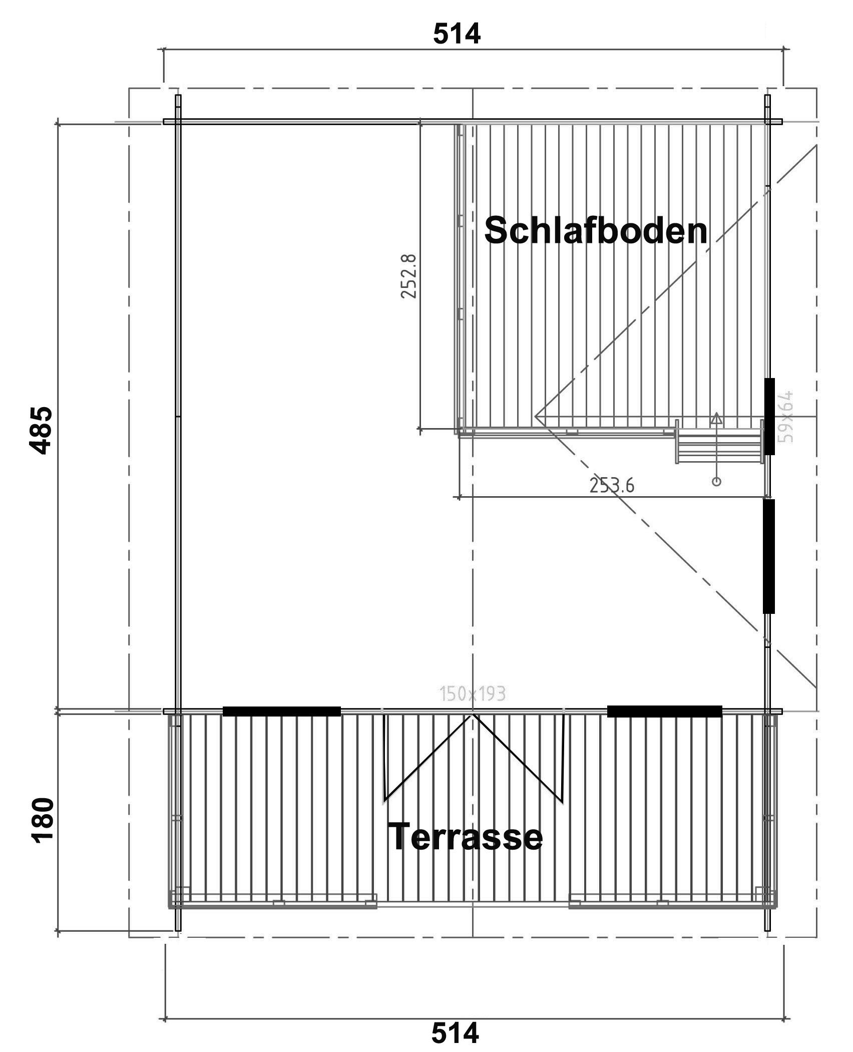 Внешний размер: 514 х 514 см + 180 см